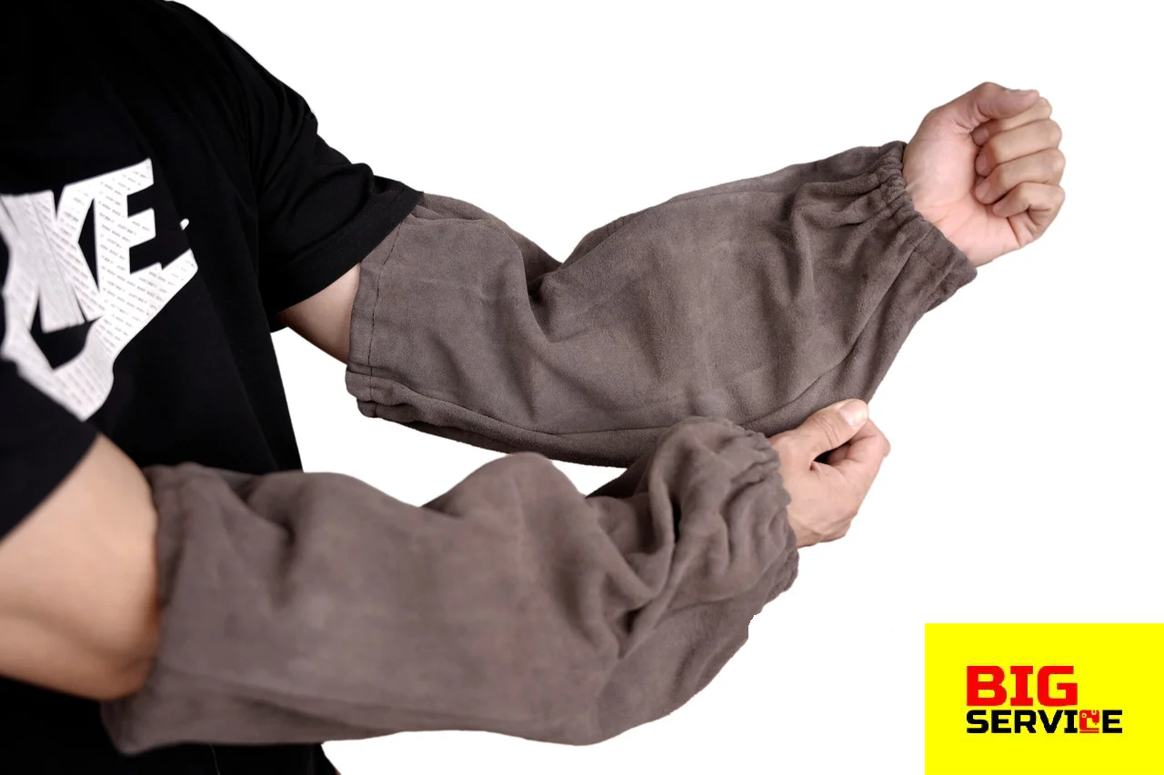 При выполнении потолочной сварки обеспечивает необходимую защиту сварщика в области плеча и предплечья. Специальная конструкция предотвращает попадание окалины между нарукавником и рукавом основного костюма