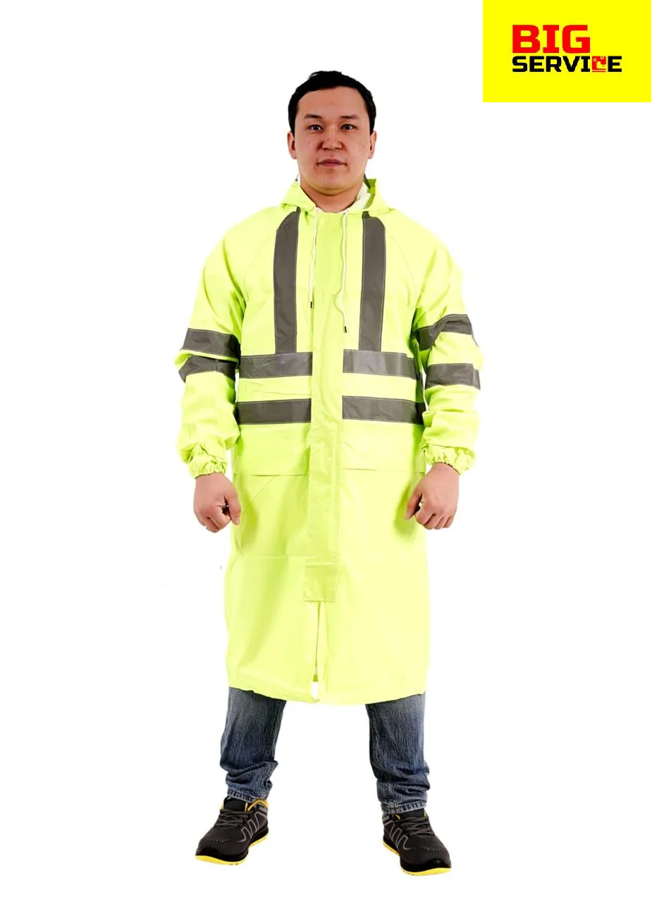Плащ светоотражающий лимонный для ИТР — это надежная защита от дождя, ветра и загрязнений, специально разработанная для работников инженерно-технического персонала, строителей, дорожников и специалистов, работающих на открытых площадках. Благодаря яркому лимонному цвету и светоотражающим полосам изделие обеспечивает отличную видимость в любое время суток, что особенно важно при работе вблизи транспортных потоков и в условиях плохой освещенности.