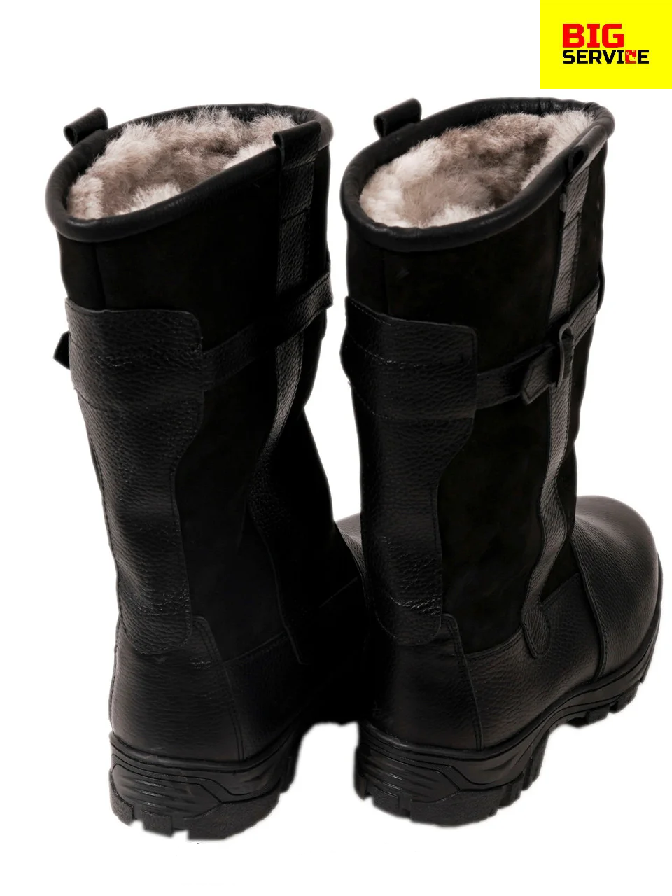 Сапоги «Мирунт ВПМ336» выполнены из сочетания натуральной кожи и натуральной замши, что делает их не только долговечными, но и визуально привлекательными. Эти материалы обеспечивают превосходную защиту от холода и влаги, сохраняя тепло и комфорт внутри сапог. Внутренняя отделка из натурального меха добавляет дополнительное тепло и мягкость, что особенно важно в морозные зимние дни.