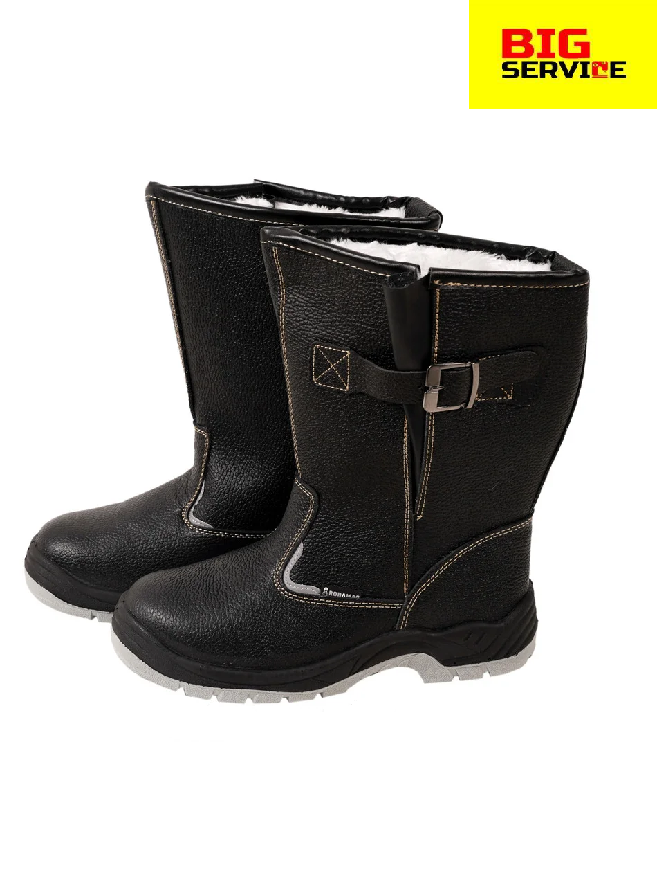 Модель оснащена металлическим подноском (МП), который эффективно защищает пальцы от ударов и падения тяжёлых предметов. Манжет из ткани Oxford предотвращает попадание снега и грязи внутрь сапога. Дополнительные амортизаторы по бокам обеспечивают поддержку голеностопа, снижая риск растяжений и ушибов.